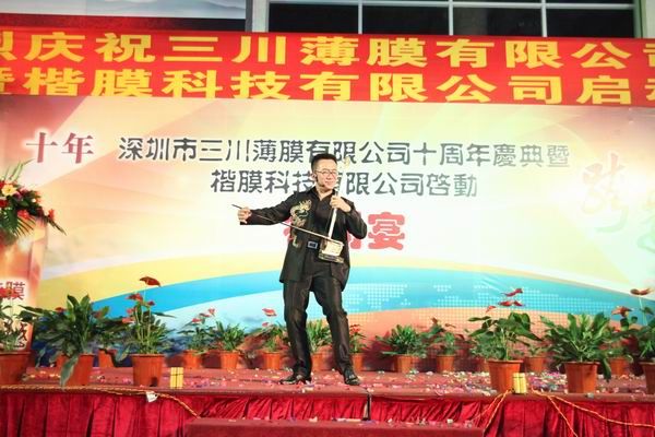 三川薄膜有限公司總經理謝偉鋒在臺上講話